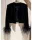 Fashionable and high-end black long-sleeved jacket with ostrich feather stitching $399.00
